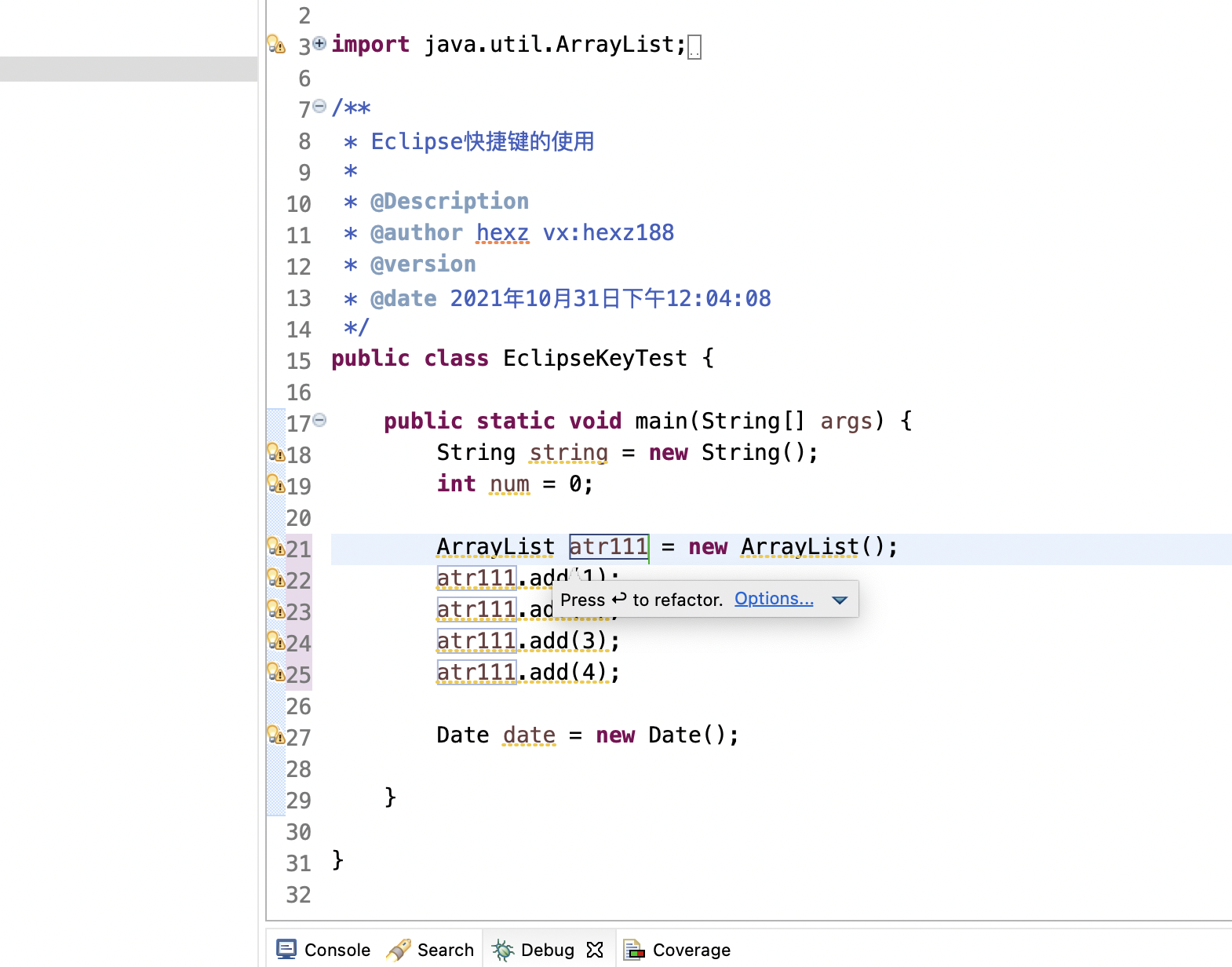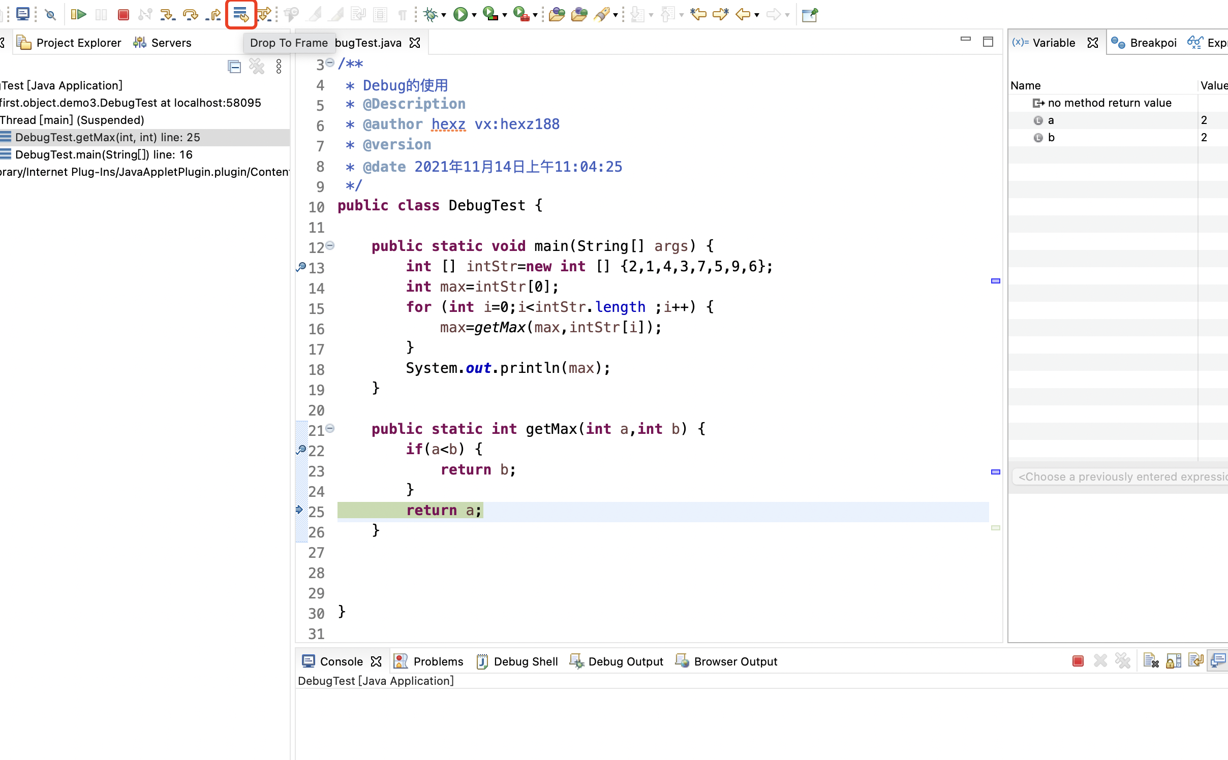这将更容易调试代码。 这只是快速介绍调试在剪贴板中作为砖滴的基本用途。 更彻底的 Eclipse- Debug 课程可以在网上获得 。