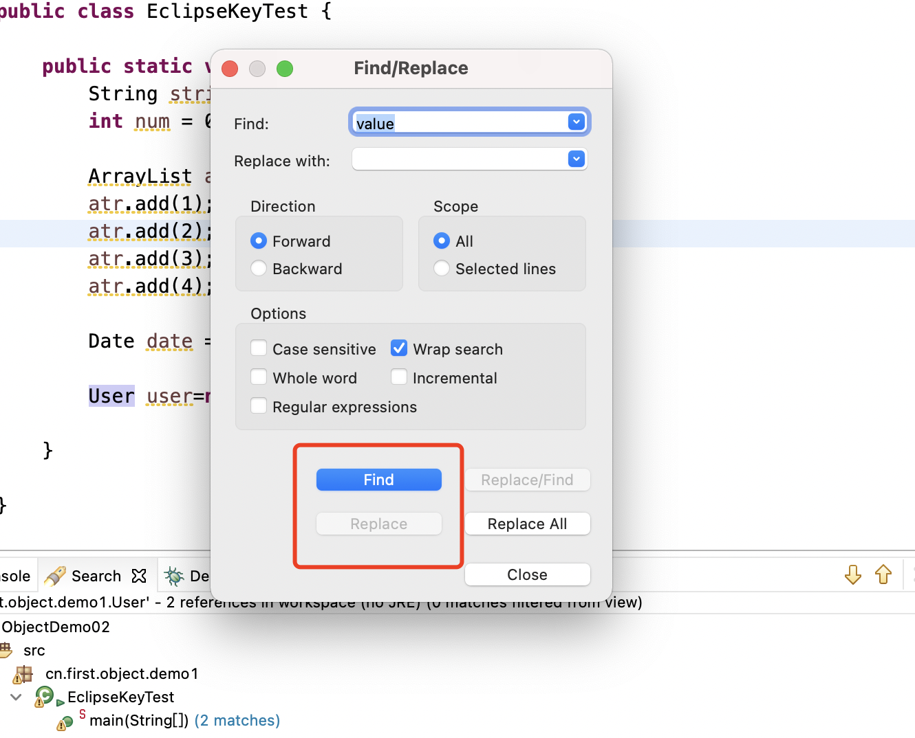 Ctrl+f 是搜索, 替换是替换。 查找是您想要替换的值 。