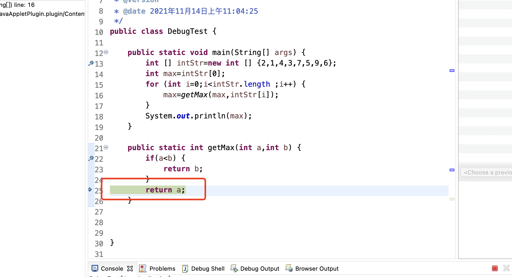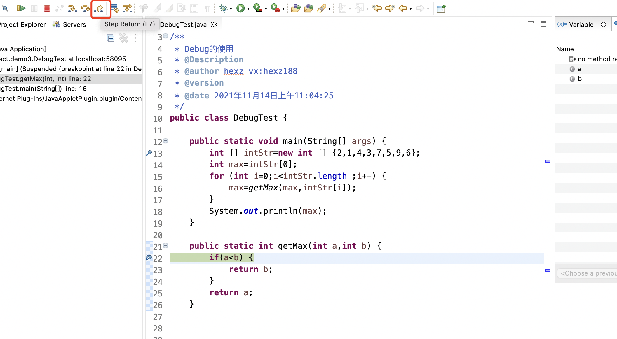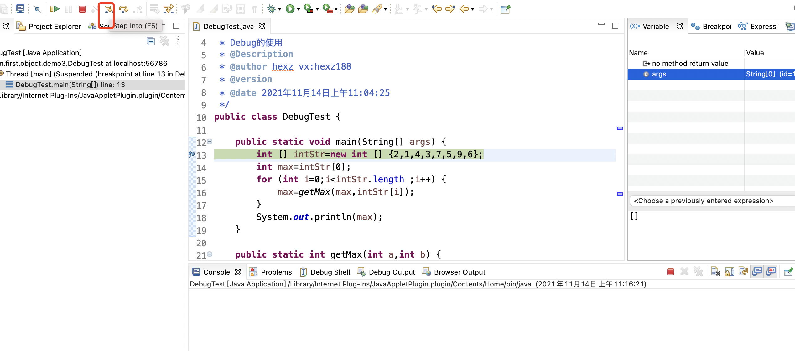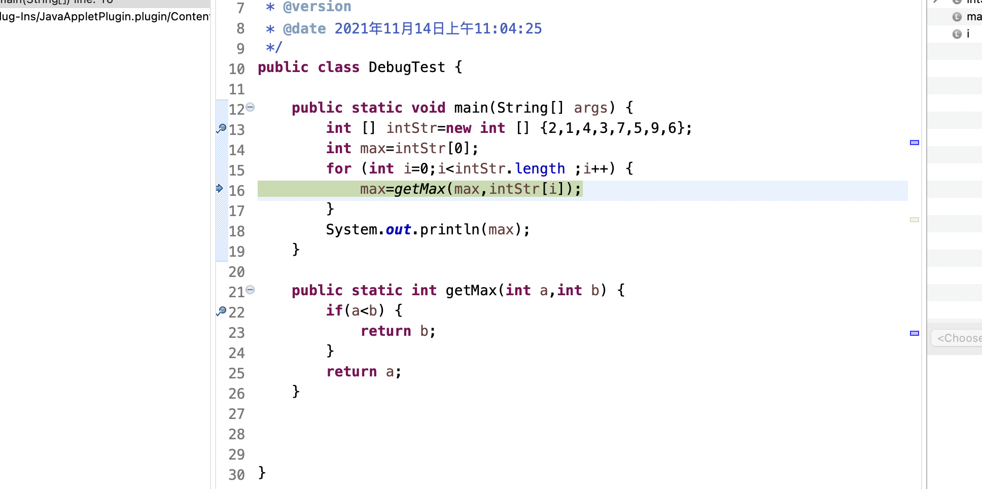 位于 GetMax () 函数旁边, 我们可以单击“ 步进内部” 输入该方法 。