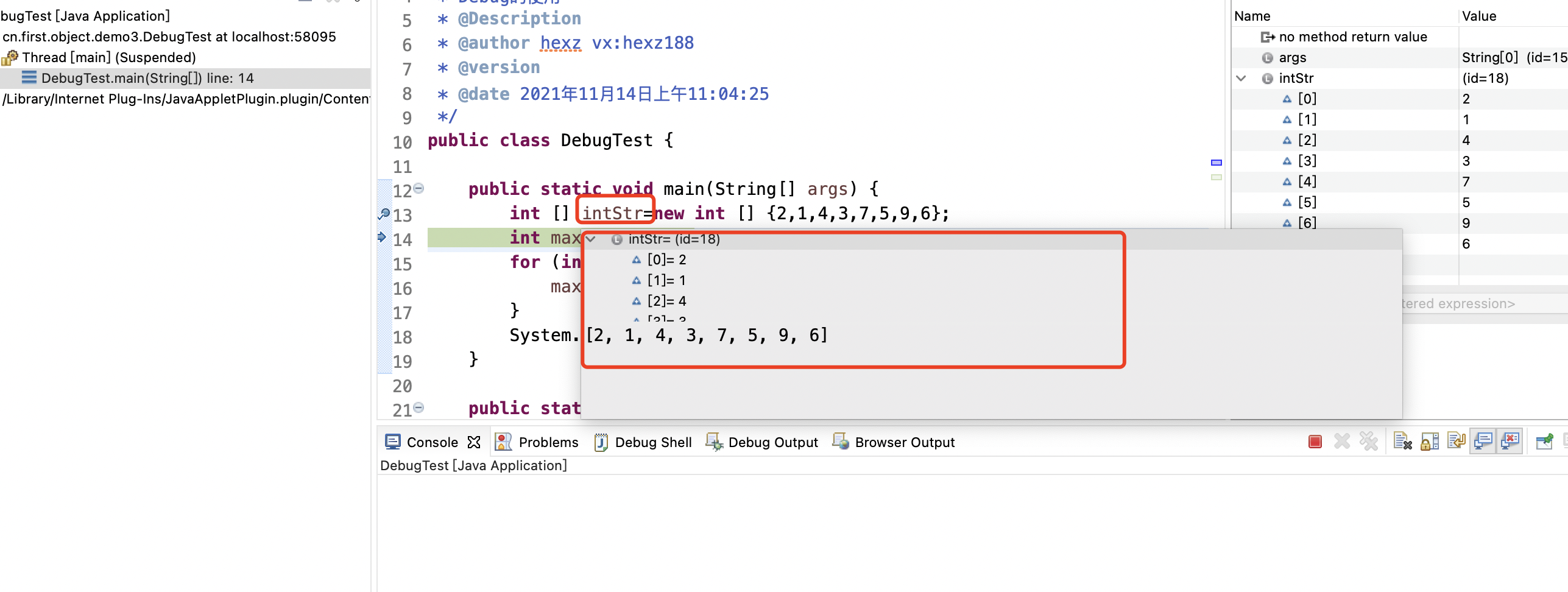 变量名称由鼠标在悬念中保留。变量数值在变量名称中也可见。