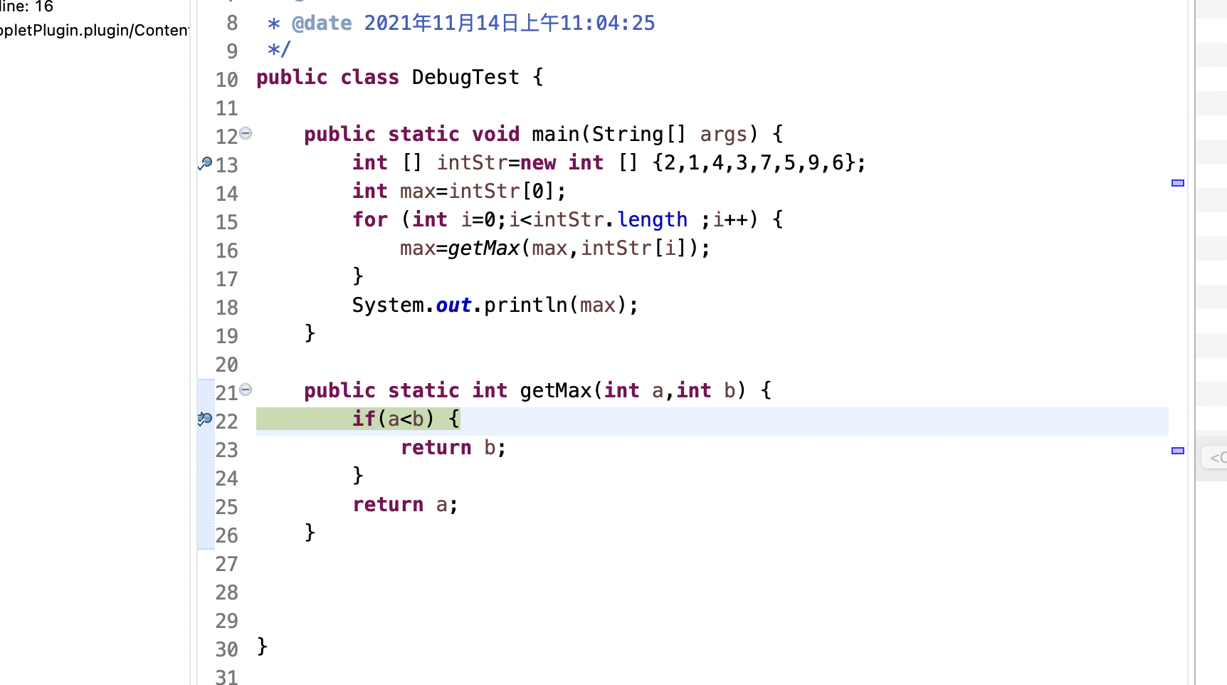 第一步是设置断点,然后双击左边的边缘,直到出现一点点。
