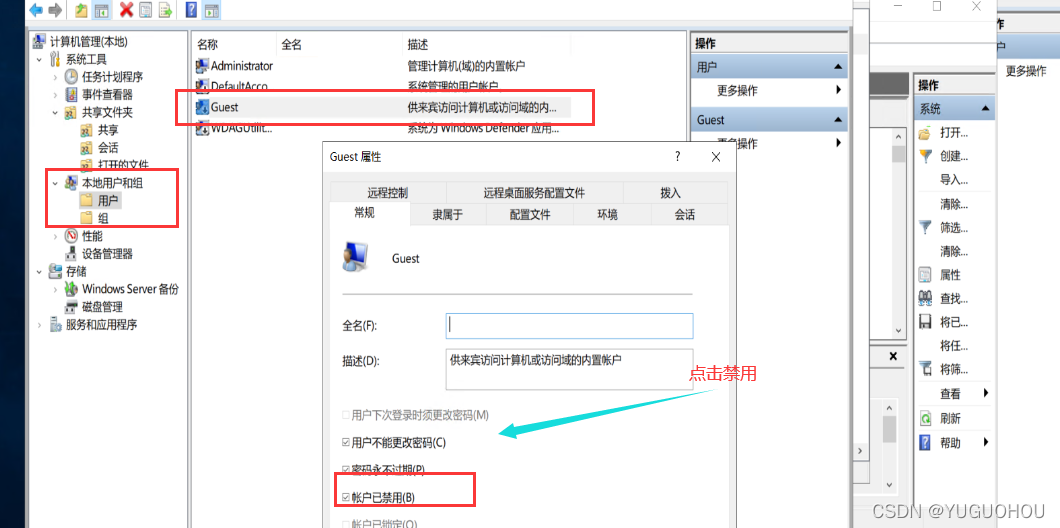 开放我们的电脑管理, 定位客人, 并禁用, 因为这个账户是短暂的, 可以被黑客使用。