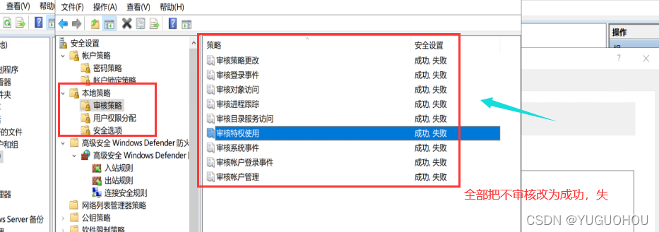 在本地安全政策中,请记录用户登录情况,包括用户登录的账户以及登录是否合法。