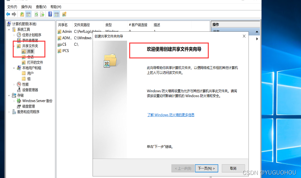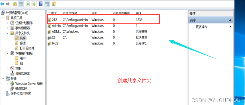 在计算机管理下, 我发现共享文件, 点击空格创建新文件, 然后输入路径, 并且可以尽快生成 。