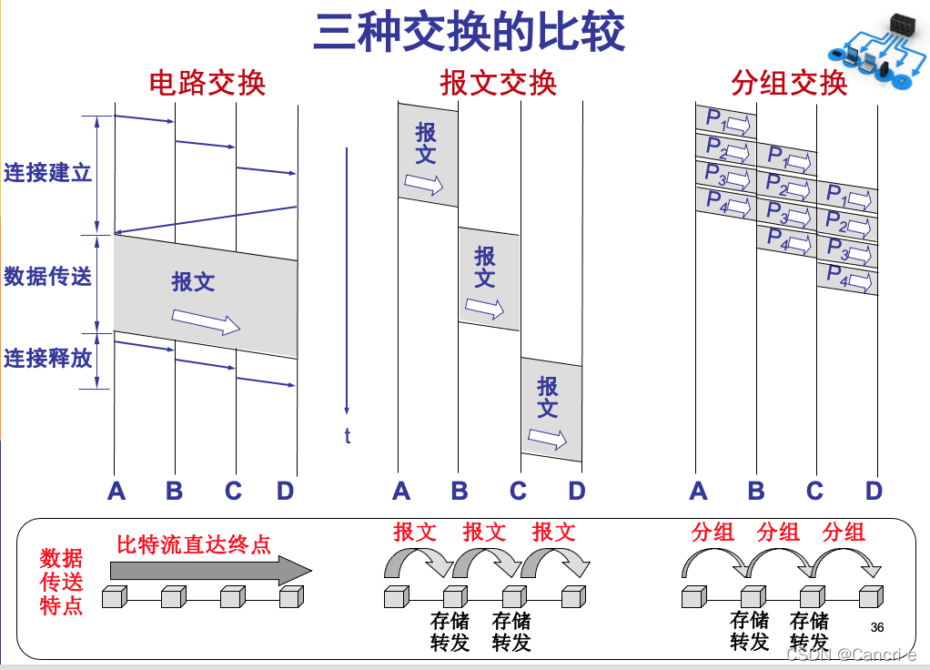 电路交换消息的完整比特流直接从发端点流向目的地, 仿佛它是通过管道发送的。