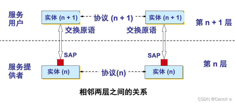 服务:在协议的管理下,两个对等实体之间的通信使服务能够在最高一级提供,使用较低级别的服务对于达成阶层协议也是必要的。
