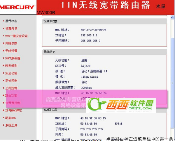 水星的 MW300R 无线路由器(MW300R无线路由器,目前为560 ), 是一个低成本的无线路由器,对一些家庭用户来说是完美的。 用户只能利用宽带接入的网络连接,如PPOE、动态IP、静态IP等,以满足用户的各种需求。 创建的防火墙可用于建立内联网网站、过滤器IP、MAC、URL等等,以有效监管互联网主机的接入权限和时间,并限制他们使用的带宽以避免资源分配不平等。