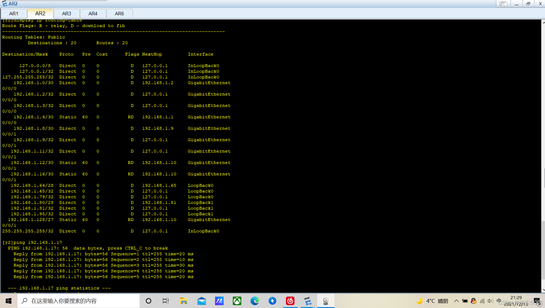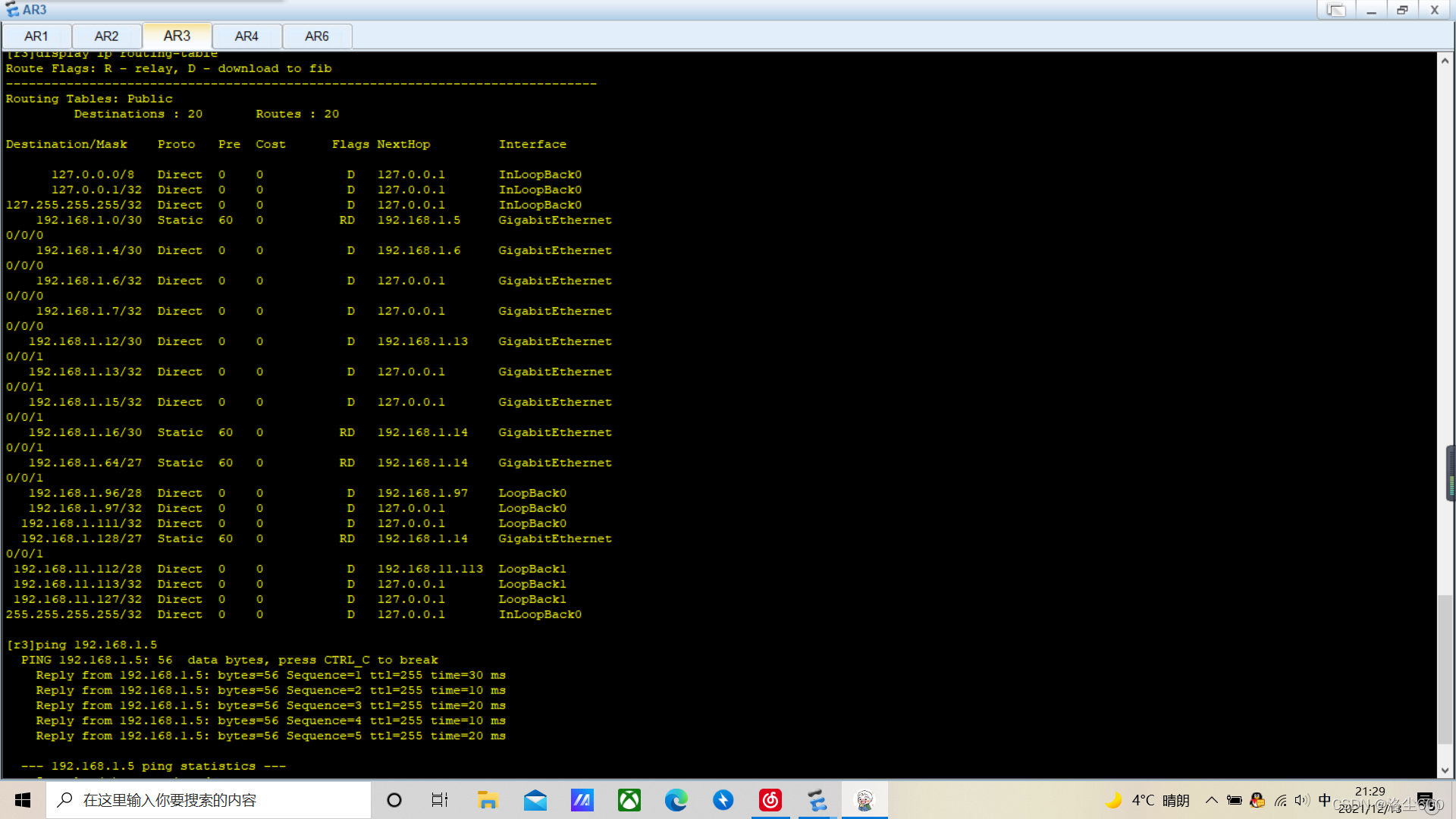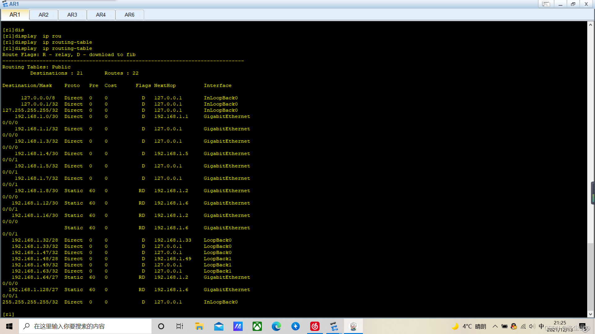 2个R1-R4路由器各有2个回回界面,以模拟个人电脑部分的存取;在网络内部的3R1-R4上无法直接生成到24条静态线路,但仍然可用。