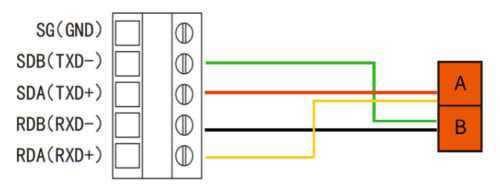 由于FX3U-485BD网关有四行,需要从RDA和SDA到A(485+CN2-4)和RDB和SDA到B(485-CN2-5)的简短访问,因此使用了485BD模块。
