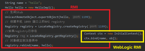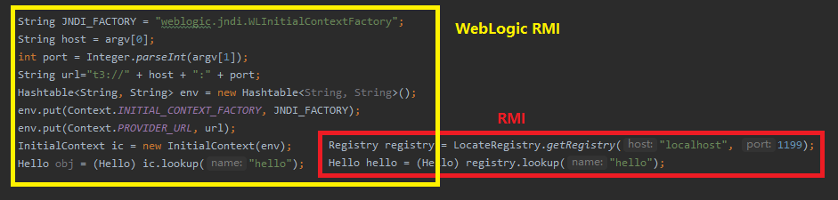 RMI的客户使用JRMP协议与服务处互动,Weblogic RMI则使用T3协议。