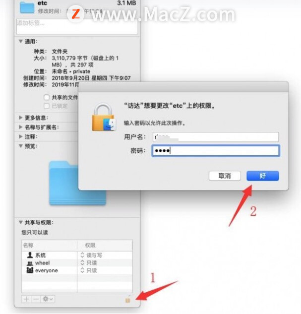5. 单击底部的锁定符号,输入登录密码,然后单击 " 好 " 按钮。