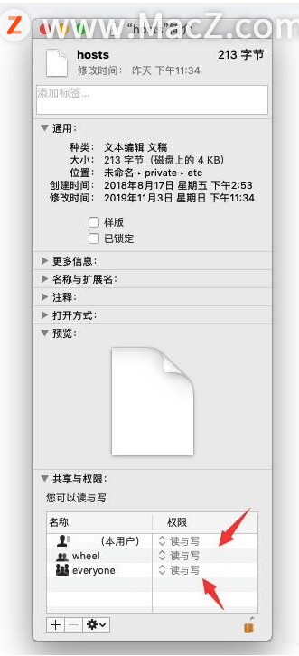 9. 将标题中的“轮式”和“每个人”的职权范围改为“读写”以便解决主机文件修订问题。