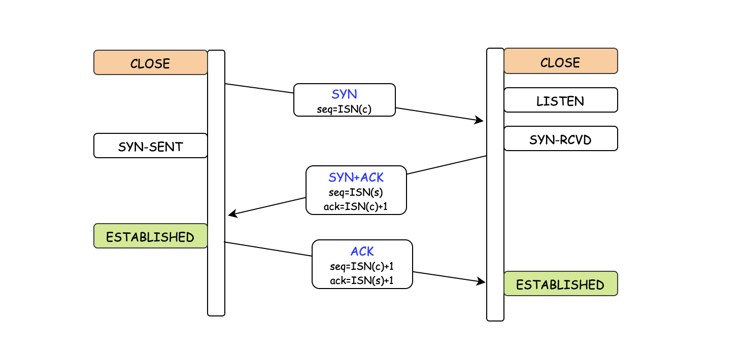 因此,在我们理解了几个术语的概念和含义之后, 让我们来看看三个握手过程。