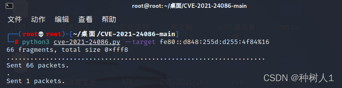 Python3 cve-2021-24086.py-目标 Ipv6 地址目标