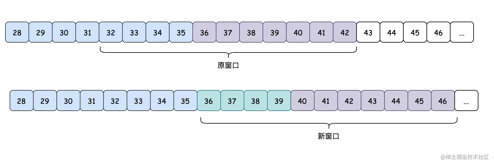 正如你可以看到的,窗口的大小是一样的。唯一的区别是接收方收到或收到。要么未接收,你没有足够空间 如果你不能拿它。发件人怎么知道目前接收端还剩多少空间?实际上,在ACK, 接收器选择自己的窗口大小。因此,发送者知道接收端窗口的大小。以上图为例,当接收者收到32-35的数据时,ACK=36 通知发件人,同时,接收端的幻灯片窗口向后滑动四位元。发件人收到ACK=36后,我被告知,数据接收器在36年前收到的数据。因此,发件人的窗口同样向后移四位数。