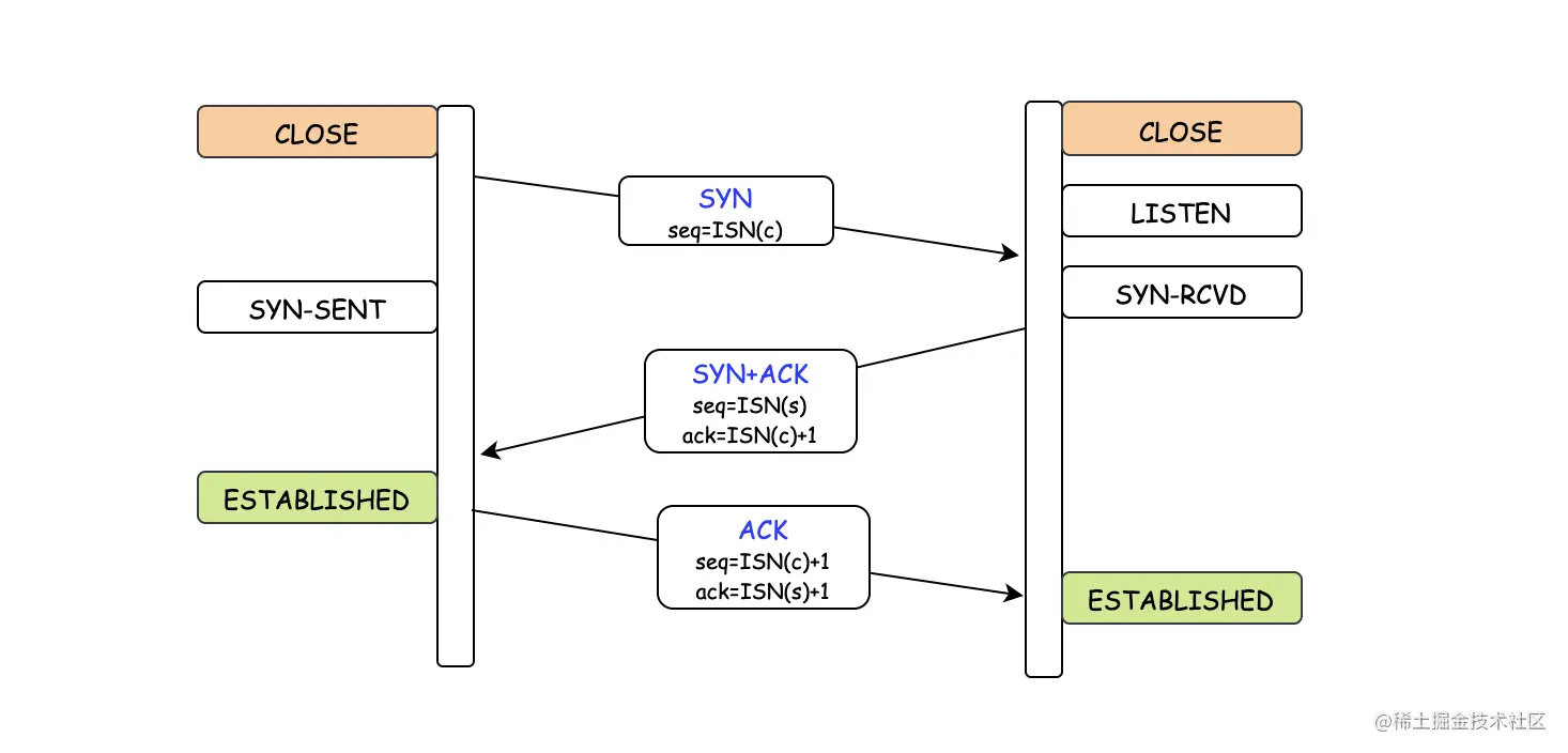因此,在我们理解了几个术语的概念和含义之后, 让我们来看看三个握手过程。