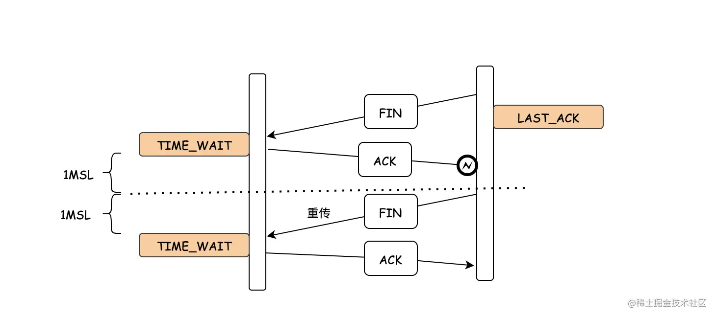Time_WAIT是活跃的关闭党最新进入的状态。时间设定在2MSL这是故事中最广泛的生命周期如果一个数据包超过MSL后未被网络另一端接收,则典型的做法是删除该数据包。因此,为什么你需要 2MSL 用于主动断开器?
