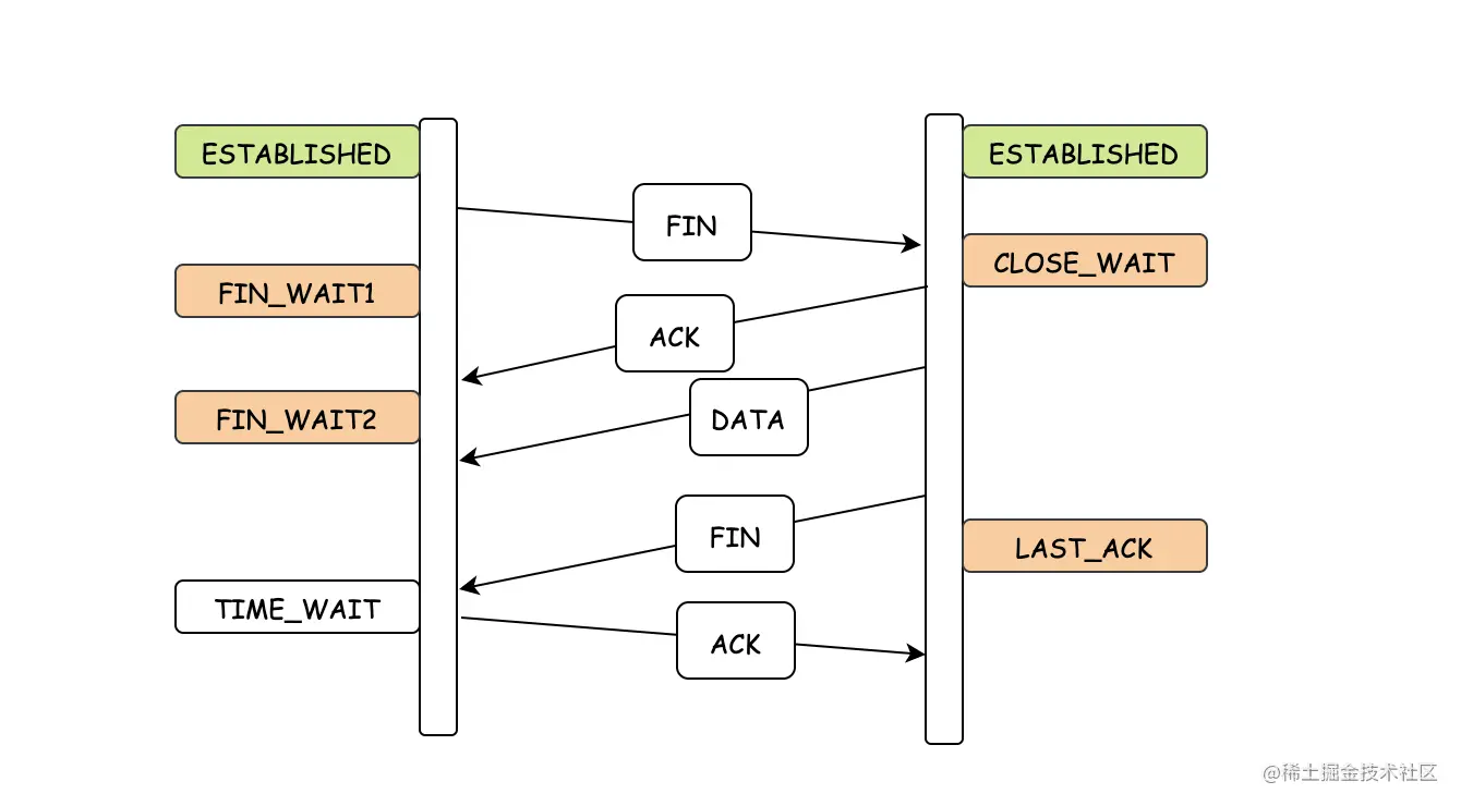在三次握手之后,让我们看看四个波进程和四个波进程, 当双方处于某种需要关注的状态时, 以及访谈站点。然而,让我们看看为什么需要我们四个波, 以及我们对每个波做了什么。