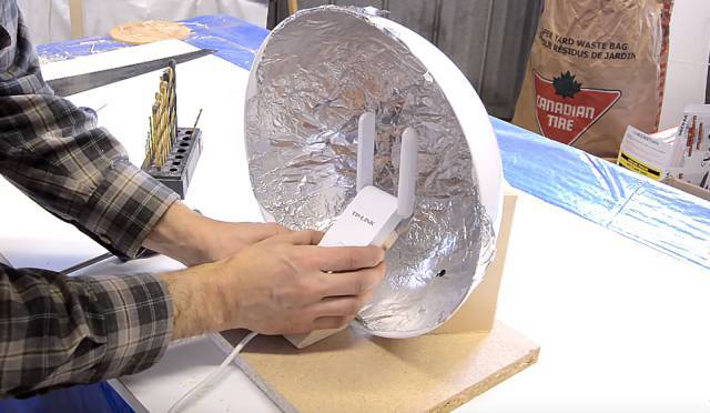 锡纸可用于制造 DY 信号增强器。 您也可以通过定位弯曲的篮子、 填满锡纸、 将无线网络路由器放置在中间来改进信号 。