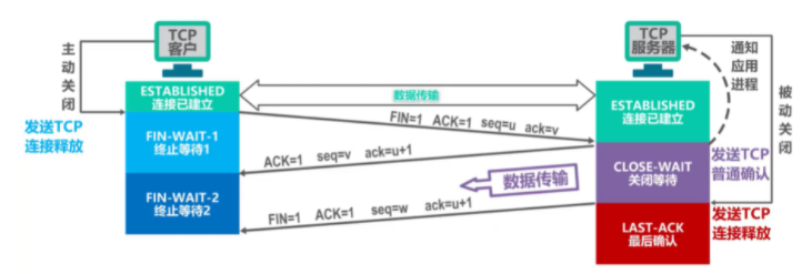 由于TCP客户程序启动了TCP连接释放,TCP服务器程序释放TCP连接被称为被动关闭。