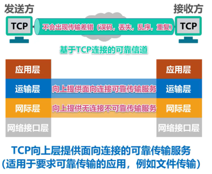 在最高一级,TCP提供可靠、以连接为导向的传输服务。