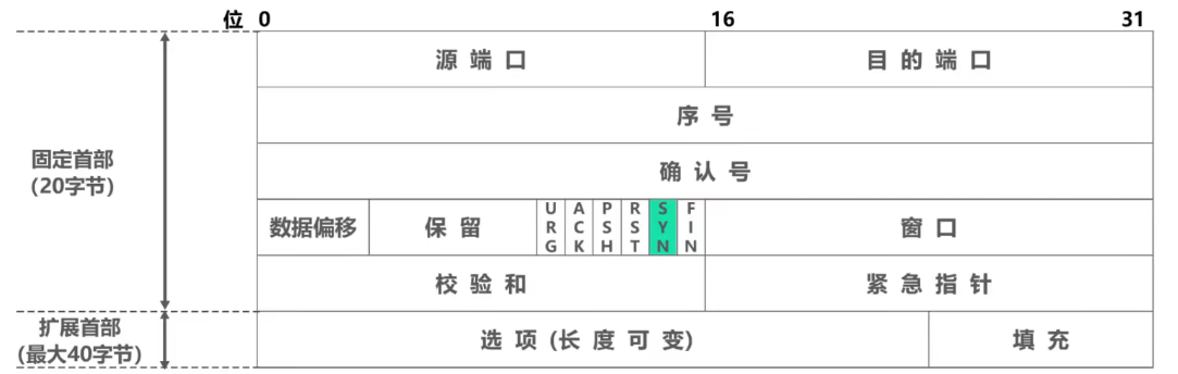 - 同步位置 SYN 设置为 1, 表示该物品是 TCP 连接请求 。