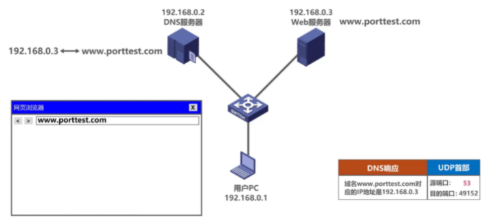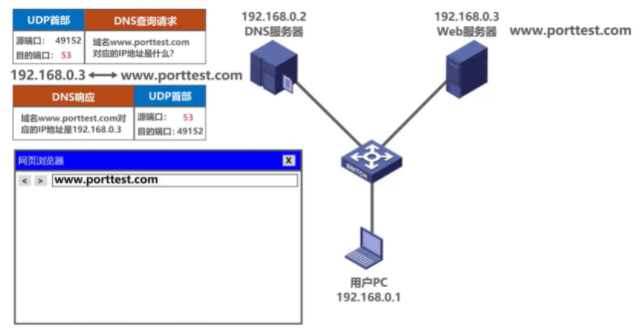 然后向用户 PC 发出DNS 响应信息,需要将 UDP 协议密封为UDP 运输水平用户数据报告。