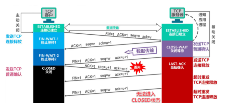 TCP服务器程序提供TCP连接释放部分,并进入最后确认状态。