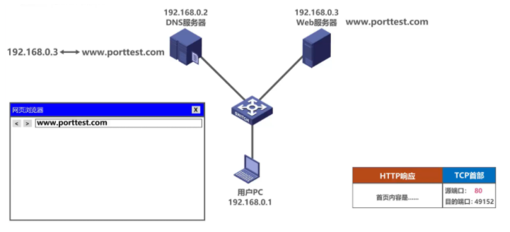 UDP的第一个目标端口号是49152,表示UDP用户数据报告的数据载荷部分,即DNS回复,应传送到用户PC上的DNS客户程序。