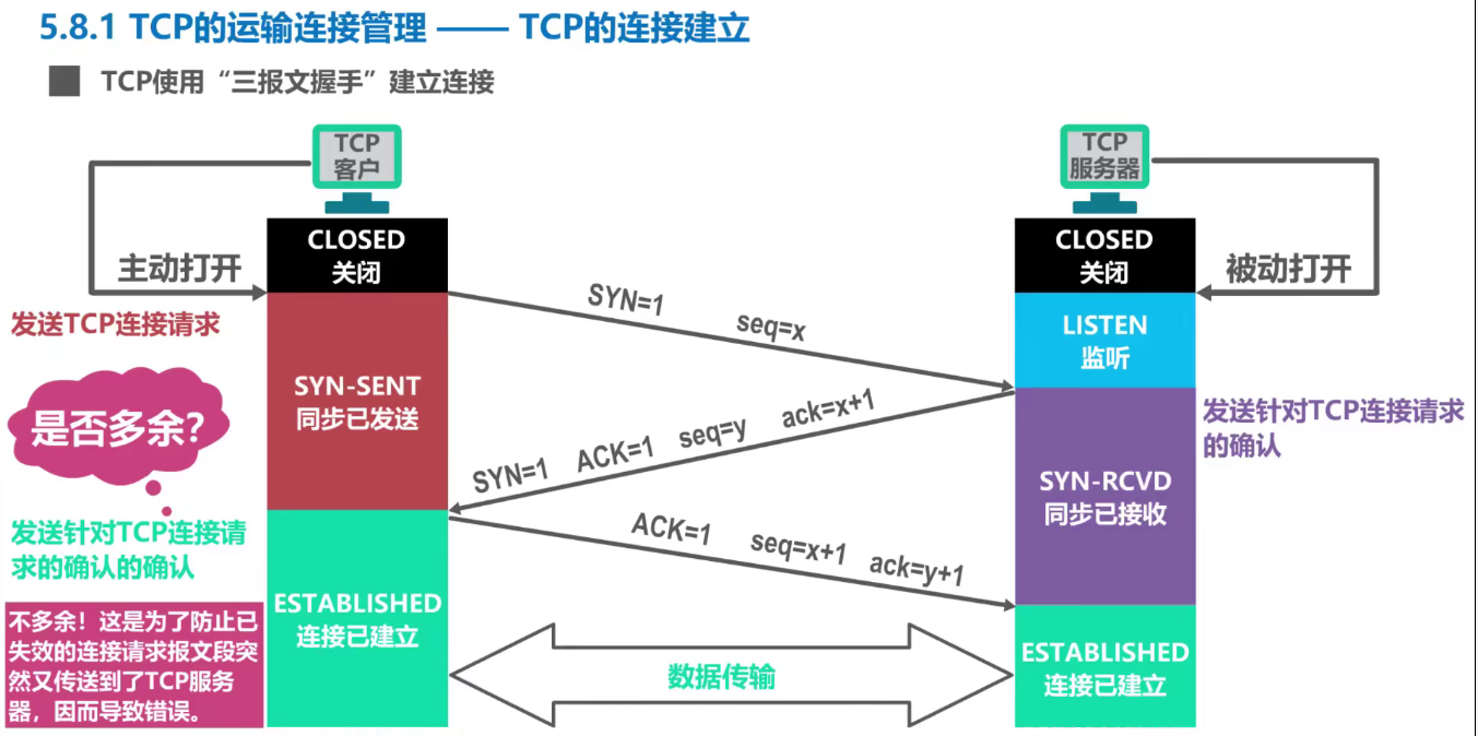 为了在数据传输之前建立TCP连接,执行TCP协议的缔约方必须利用三通信息握手。