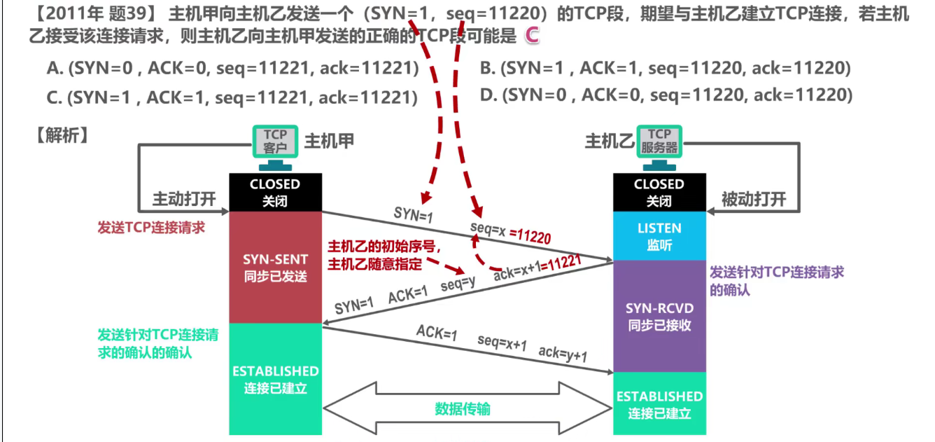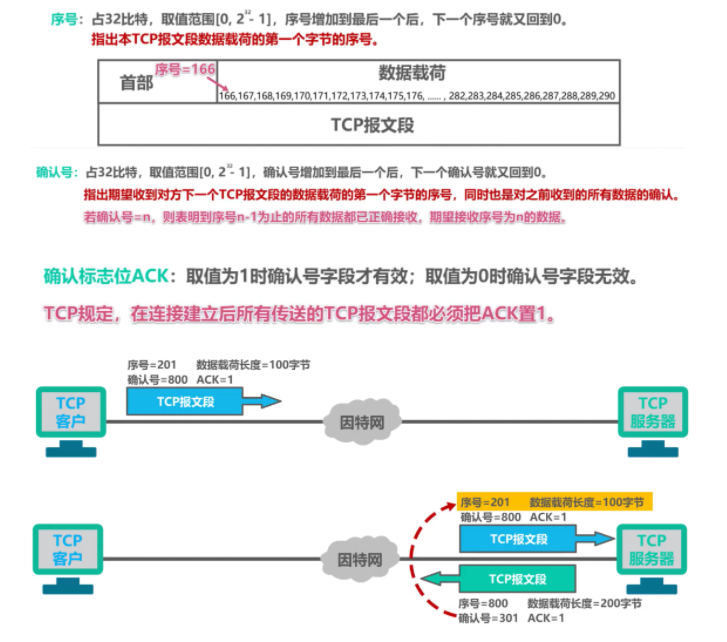 - 作为TCP客户程序所选的初始序列号,序列号字段后继数被设定为x的初始值。