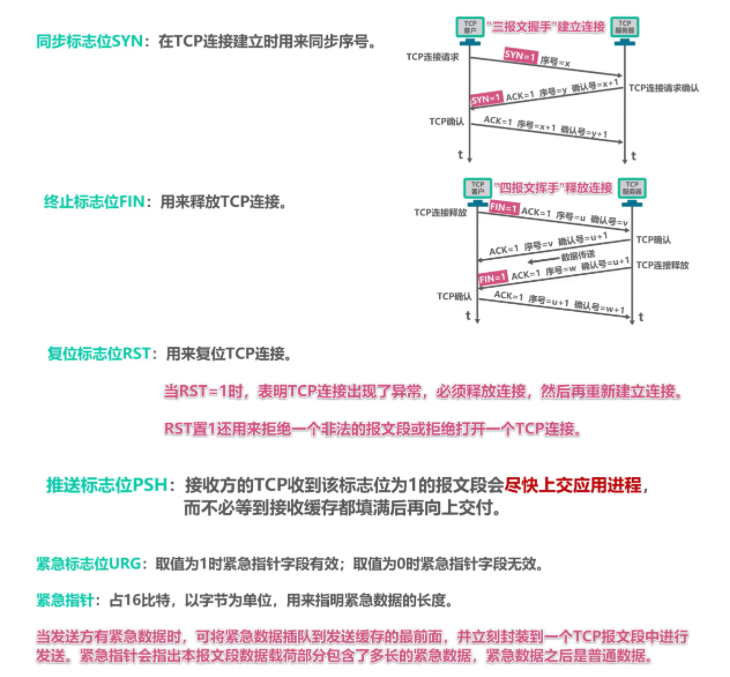 - 已停止使用的FIN和经确认的ACK的数值定为1,表明它是一个与TCP相连的释放部分,同时确认以前收到的释放部分。