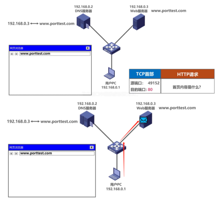 用户计算机上的 HTTP 客户程序现在可以将 HTTP 请求信息发送到网络服务器(类似于 DNS 发送和接收信息的方式)。