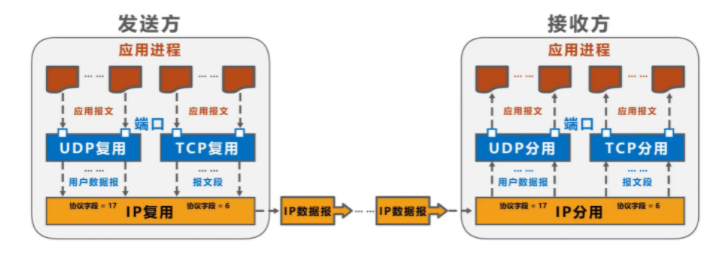 接收方的运输层通过不同的港口提供给申请层的匹配申请程序,并通过多个港口接收。