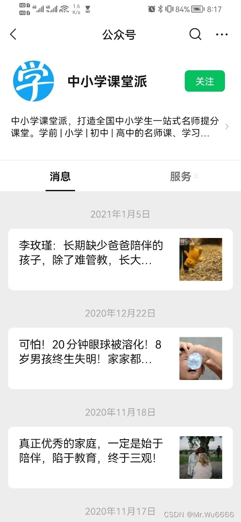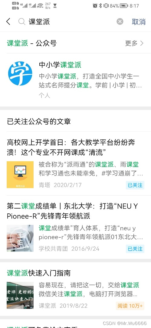 派公众号首页: