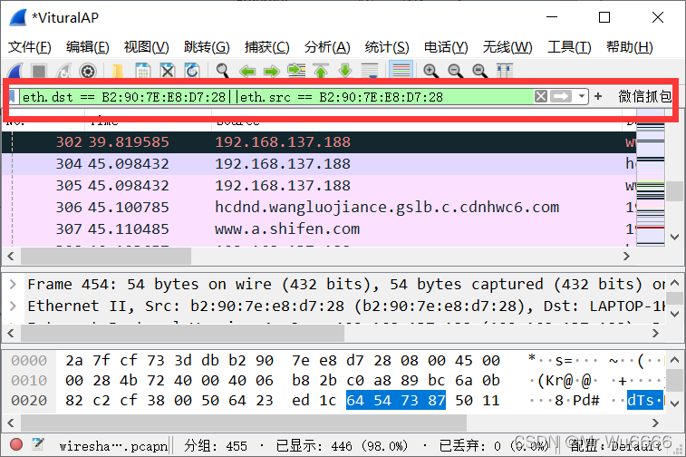 下面的“B2:90:7E:E8:D7:28”是手机的mac地址,用来从手机的Mac地址中过滤源地址或目的地地址。