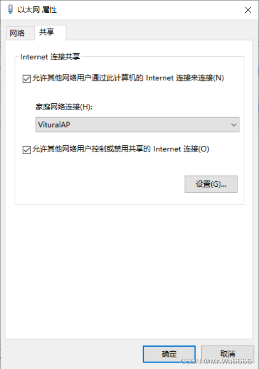 3) 配置互联网连接共享。