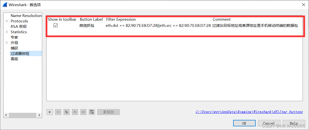 首先,在上一节应用Wiresark过滤器是不可行的,因为它设定只筛选Mac地址的来源或目的地,即我移动电话的Mac地址的包件。我手机的pip地址是,APP的地址是