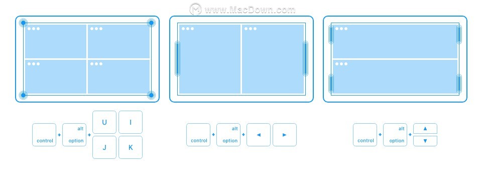 自定义键盘快捷键通过拖动激活,或者磁铁通过将窗口匹配到菜单栏中的有组织砖块来移除屏幕。复制、比较和多任务。