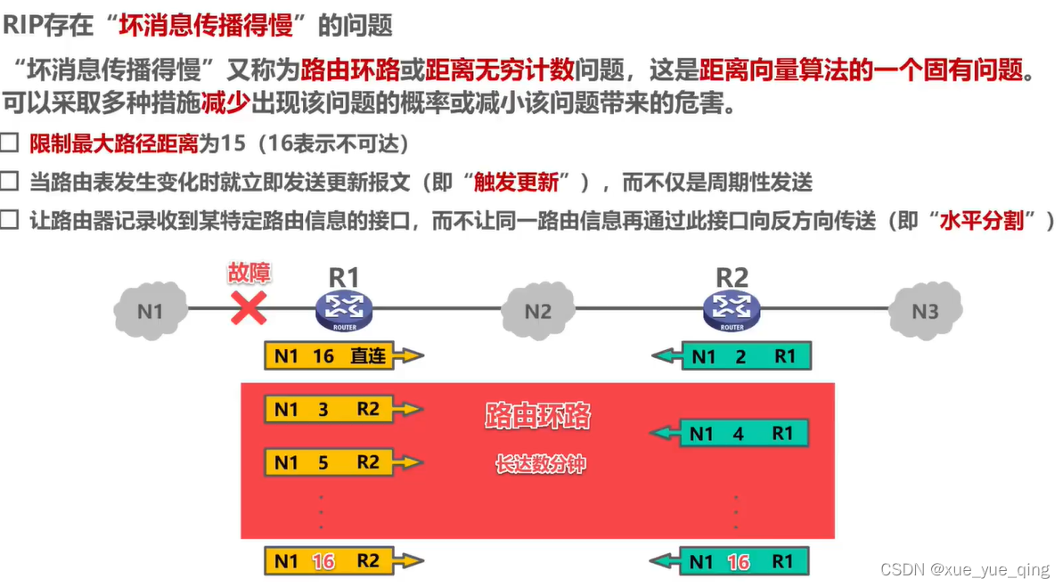 允许路径最多有 15 个路由器。 因此, RIP 只适用于小互联网。 “ 距离” = 16 小时无法进入 。