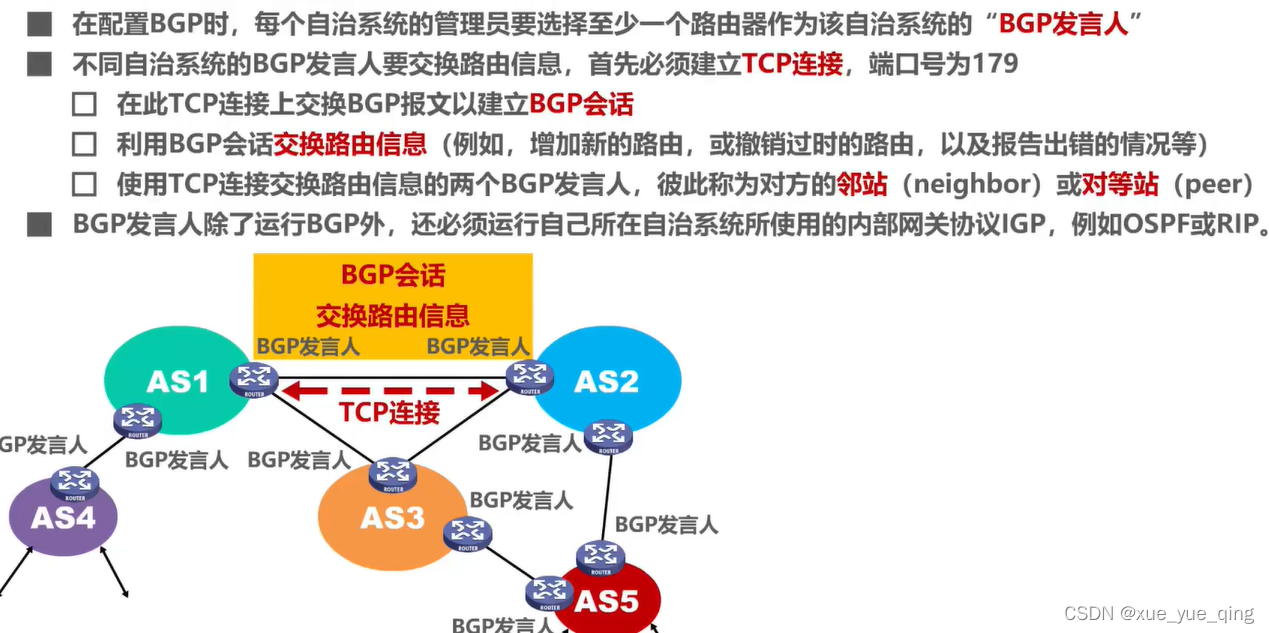 BGP代表传达网络无障碍信息(使用一系列独立系统连接网络)。