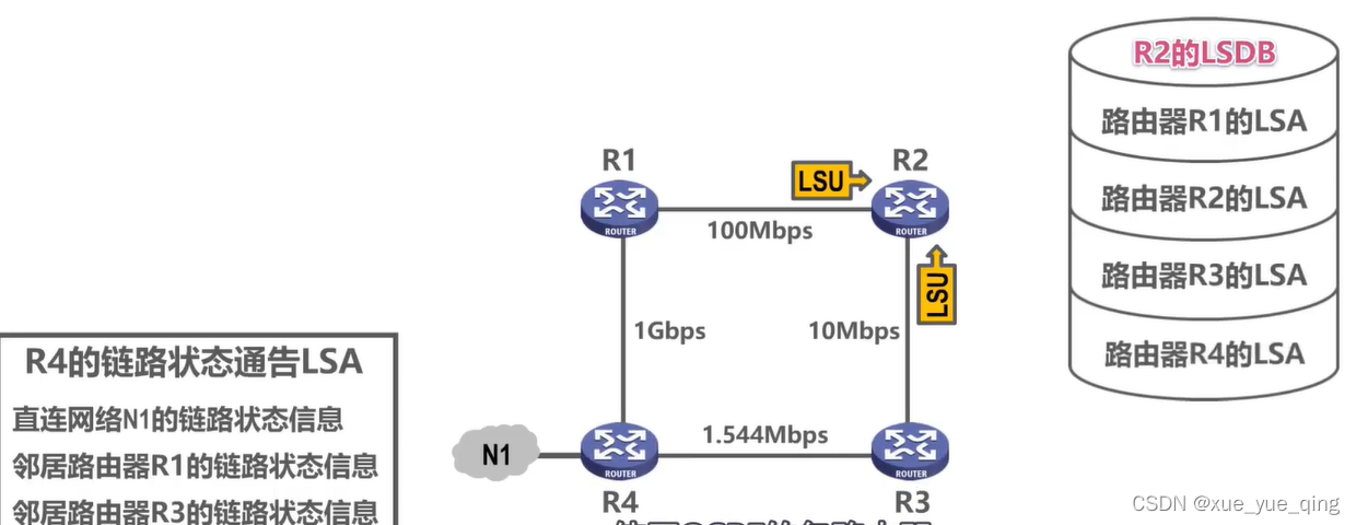 每个OSF驱动路由器都有一个链接状态数据库,或LSDB,用于储存LSA。