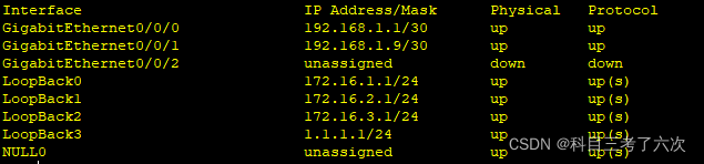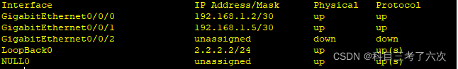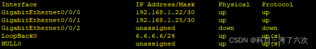 [r6-GigabitEthernet0/0/0]ip a 192.168.1.22 30