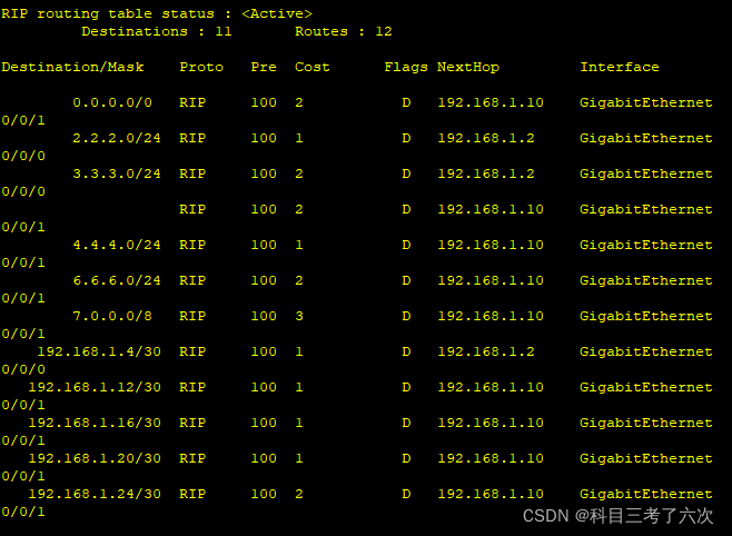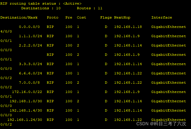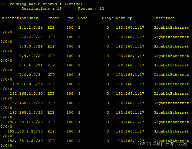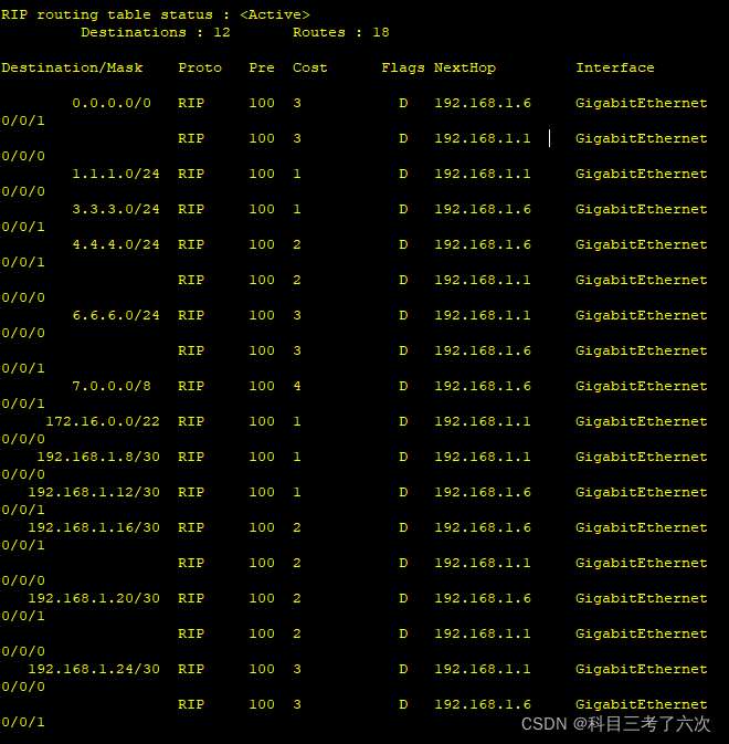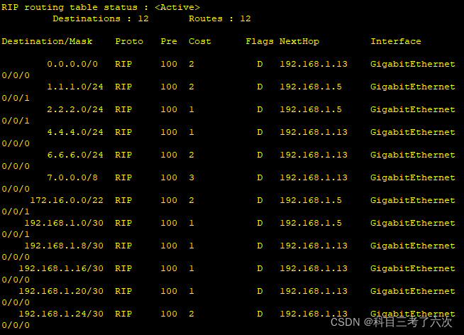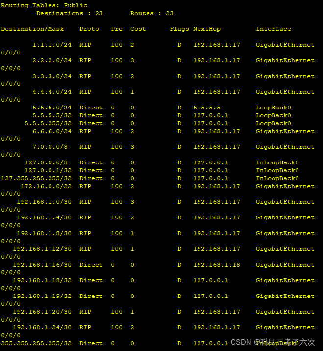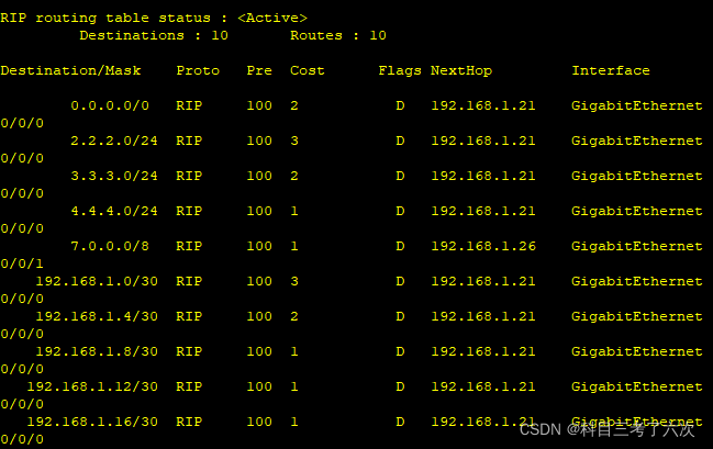 3. 在R6 0/0接口上设置 RIP 接口 2。RIPV1和RIPV2兼容。这使R6和R7能够获得RIPV1路由器共享的路线进入信息知识。作为ISP操作员,AR5回击模拟器因此,R5可被视为边境路由器。这就是为什么R5有一条缺失的路径。这将允许您访问其他路径条目的信息 。此时,你可以完全上网。