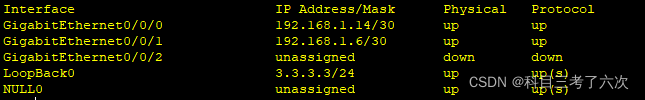 [r3-GigabitEthernet0/0/1]ip a 192.168.1.6 30