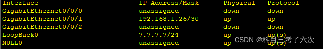 [r7-GigabitEthernet0/0/1]ip a 192.168.1.26 30
