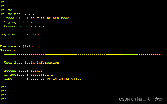[r7-aaa]local-user xujialong privilege level 15 password cipher 123456