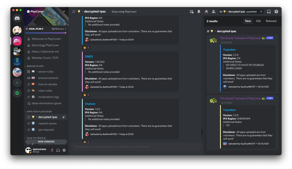 PlayCover 官方 Discord 服务器中的已解密 IPA 分享频道