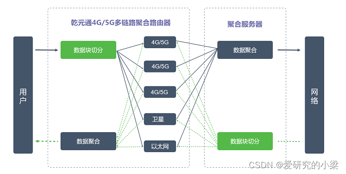 应急事件发生地往往是信号衰减严重或者人员密集场所,单个链路的通信能力会急剧下降,在此情况下,依托单个链路实现大体积信息的快速传送变得极为困难,本方案可以通过聚合多个小容量通道形成一个大容量通道,根据前端通讯模组的结构不同分为 4 倍扩容、8 倍扩容和 16 倍扩容等多种机制。