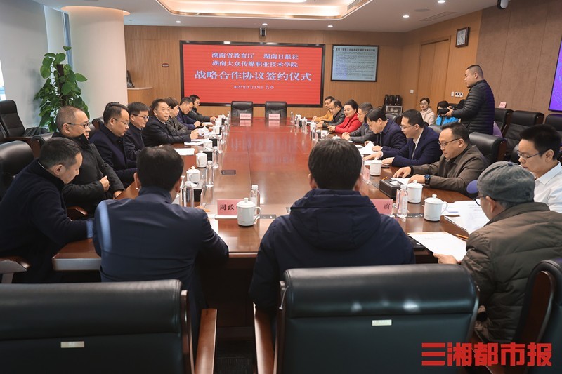 三湘都市报1月13日讯(通讯员 朱丹 邓可可 全媒体记者 杨斯涵 黄京)聚焦教育融媒体建设,培养融媒体专业人才……今日上午,湖南大众传媒职业技术学院与湖南日报社签署战略合作协议,致力于产教深度融合、校企合作体制机制创新发展,建设传媒职业教育新高地。这是学院继与湖南广播电视台、马栏山视频文创园等省内传媒龙头企业(园区)建立战略合作关系之后,在探索传媒职业教育改革方面又一重大成果。